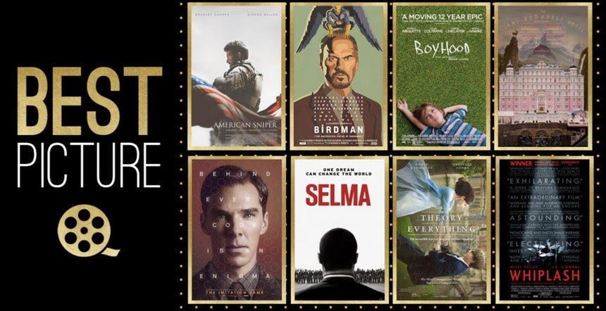 8 películas compiten por el premio más importante de la noche. Aunque, como viene siendo habitual, las candidaturas en otros apartados destacados (dirección, actor o actriz principal, guión, montaje) ofrecen pistas para distinguir a las nominadas con opciones reales ("Birdman" y "Boyhood" parten como grandes favoritas) de aquellas otras que están para hacer bulto (independientemente de su calidad, "Selma" sólo compite en las categorías de mejor película y mejor canción). Llevo años diciéndolo: a mí me gustaba más cuando la Academia nominaba 5 títulos para competir por el premio a la mejor película. Pese a las preferencias personales de cada uno, existía la sensación de que cualquiera de ellas podía resultar ganadora. Este nuevo sistema, instaurado en 2010, es un absoluto paripé. En fin, cosas de la mercadotecnia.